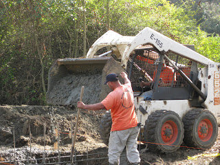 As this photo of the dam at the south lake shows, some parts of the stream bank experienced pretty severe erosion. The project team walked the full length of the stream on Thursday to identify erosion and to make sure that those areas are properly addressed as we strengthen the banks over the next couple of weeks.